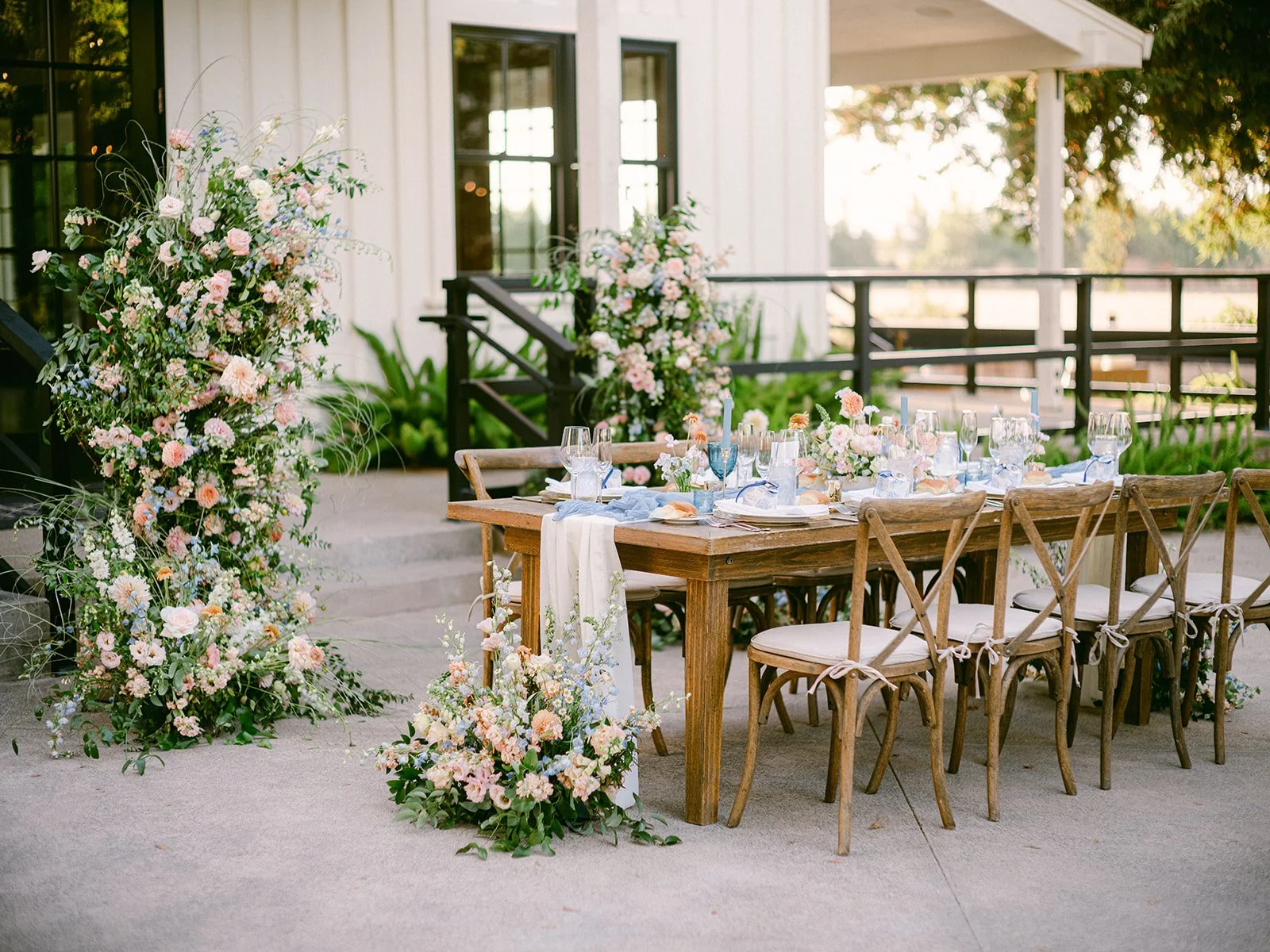 A Relaxed Outdoor Wedding in Calming Shades of Blue at Park Winters. This wedding was featured on Style Me Pretty and took place at Park Winters during the height of summer. Set against the estate’s classic garden backdrop, the design embraced timeless garden style florals while introducing soft blue tones to bring a sense of coolness and visual relief to an exceptionally warm day. Delicate textures, airy movement, and a refined color palette came together to create an elegant and refreshing interpretation of a summer garden celebration.